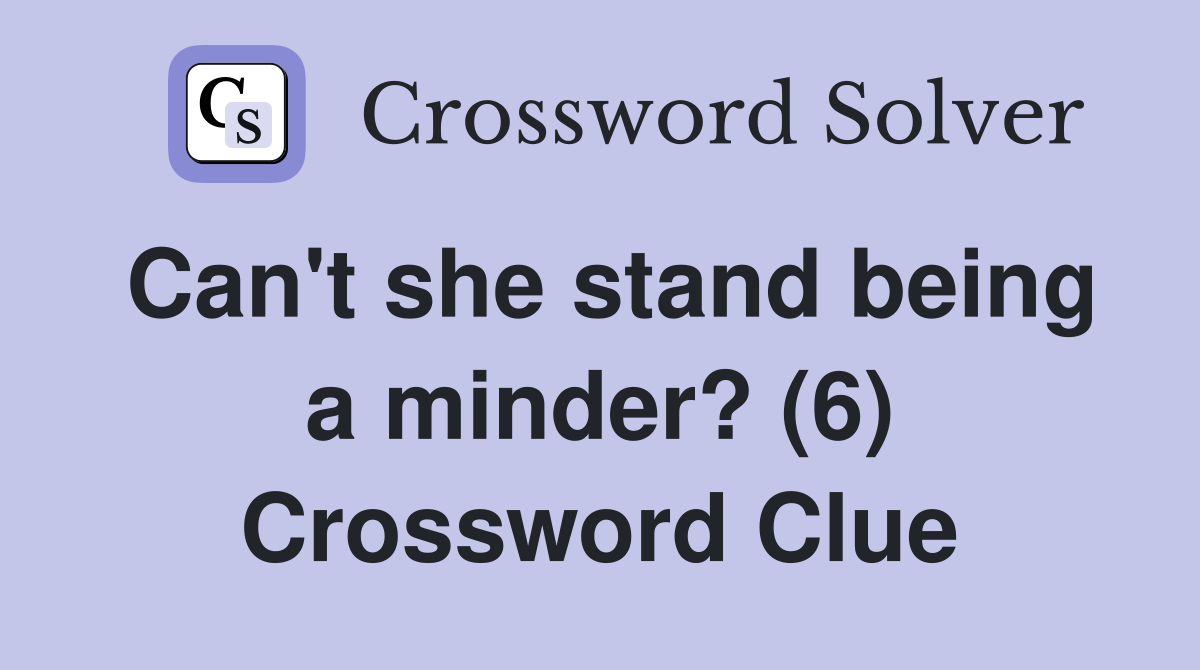 Can #39 t she stand being a minder? (6) Crossword Clue Answers