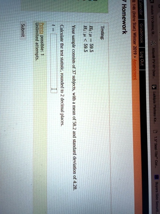 SOLVED: 2 Calendar Submit = Unlimited Calculate H : u Ho: # Testing