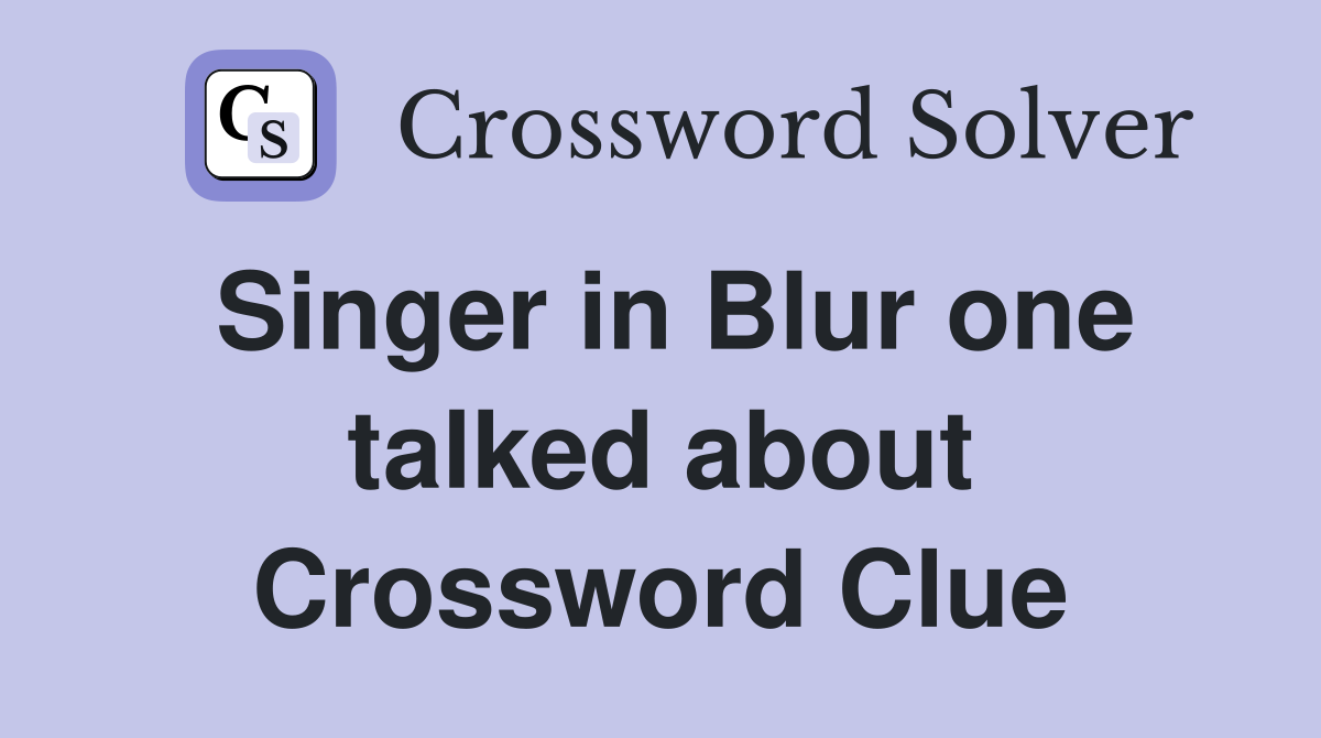 Singer in Blur one talked about Crossword Clue Answers Crossword Solver