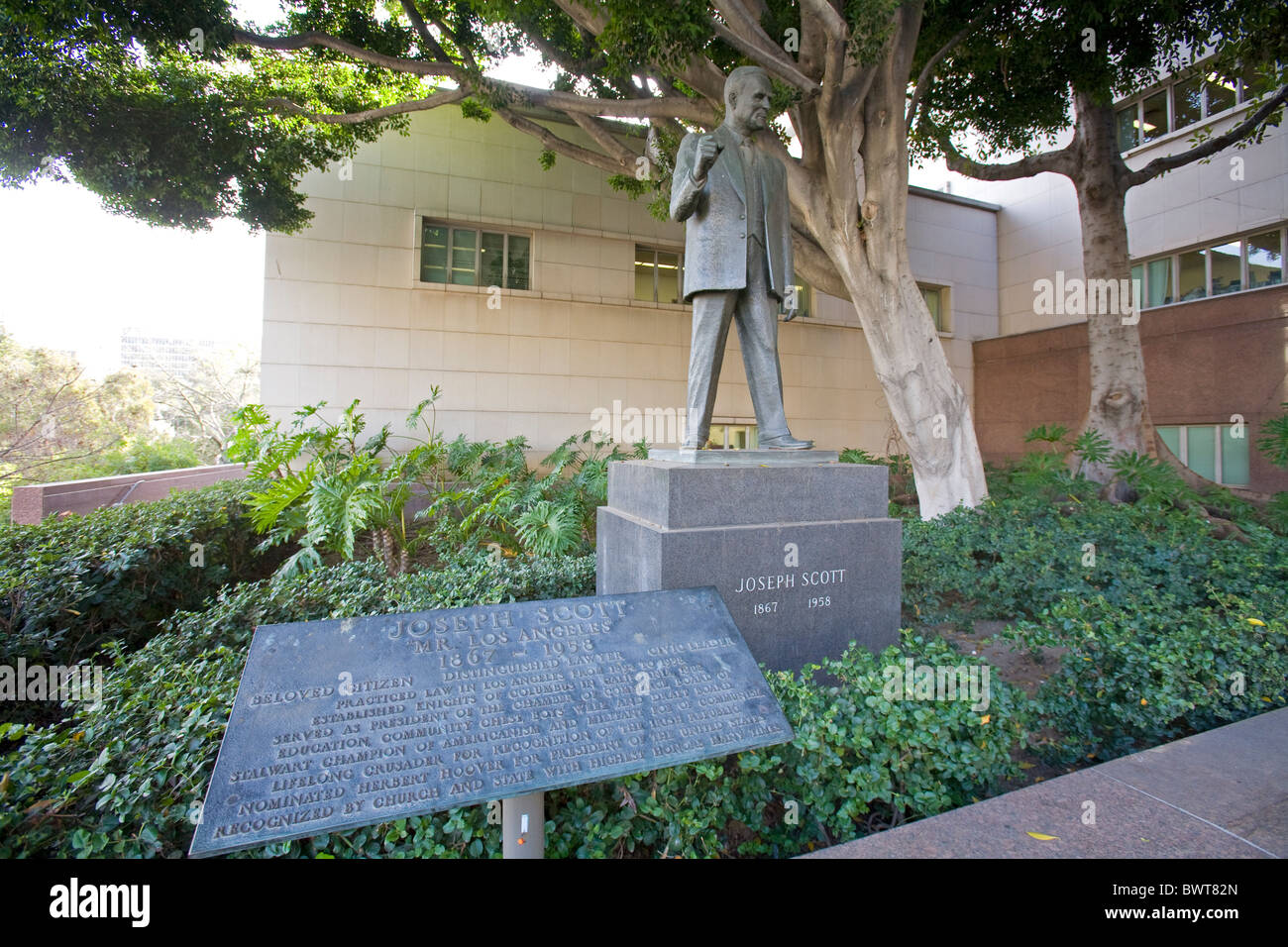 Statue of Joseph Scott in front of Stanley Mosk Courthouse prominent