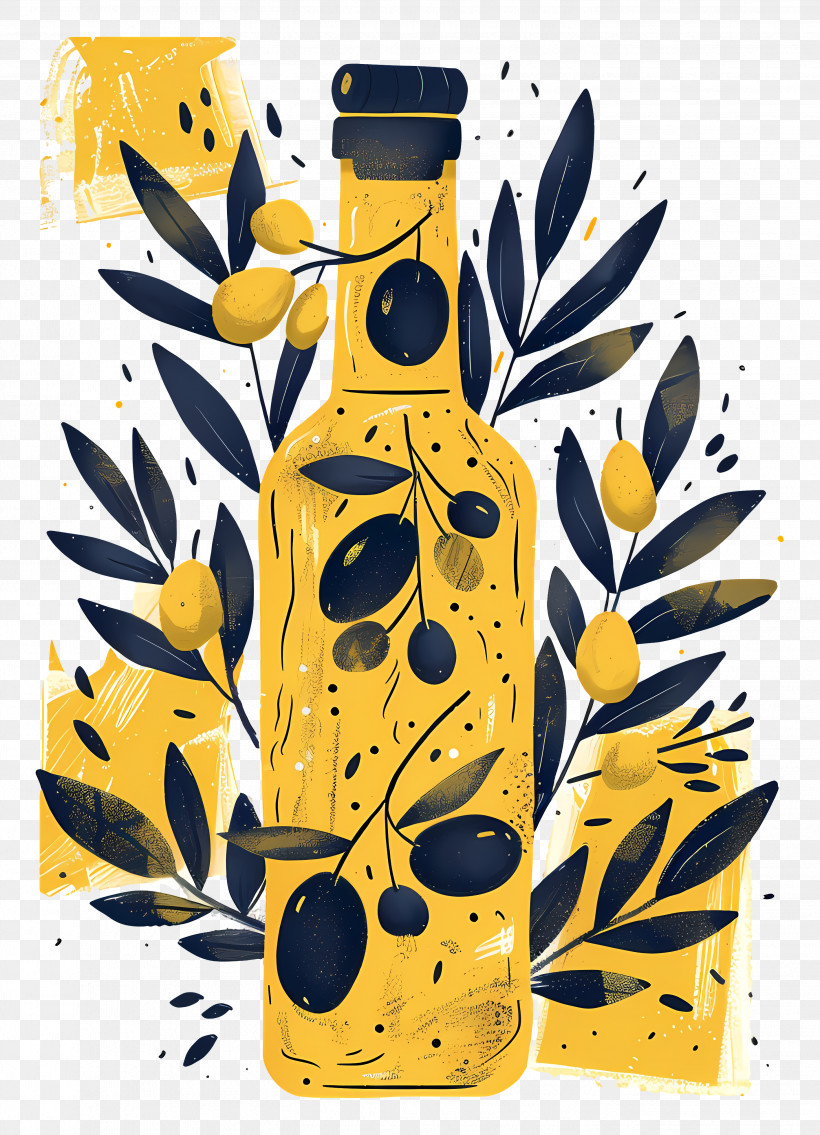 Olive Oil Olive Oil Bottle With Branches Illustration PNG