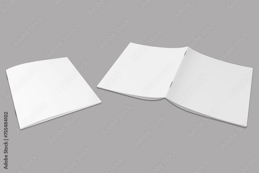 Empty Blank white bi fold catalog brochure booklet with staples mockup