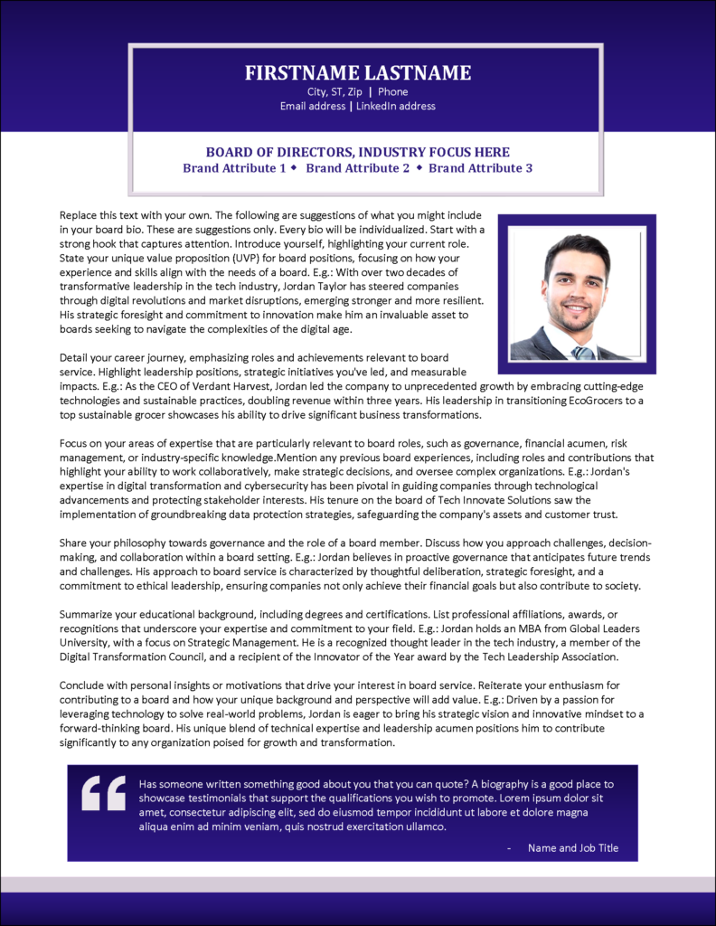 Elite Resume Template for Board of Directors Distinctive Templates