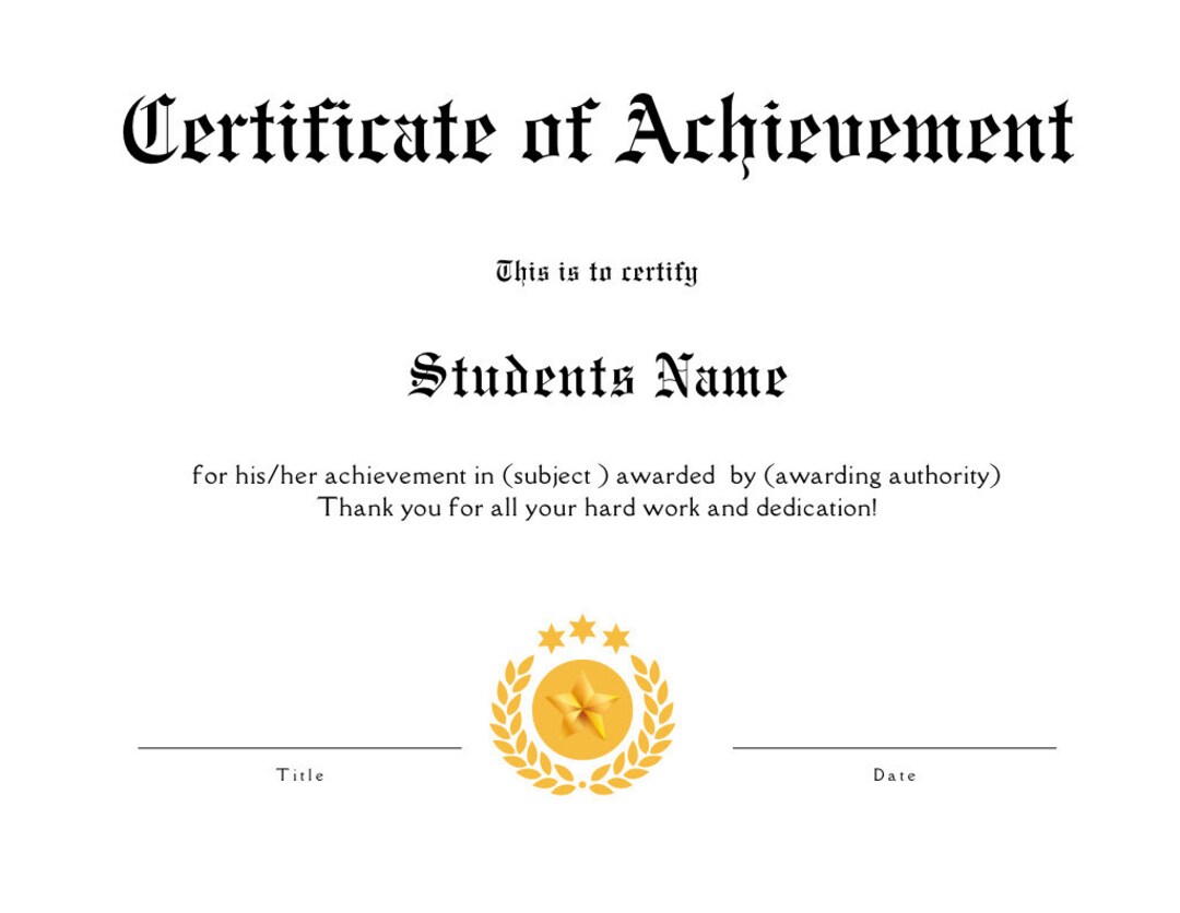 Student Award/certificate: Customizable Etsy