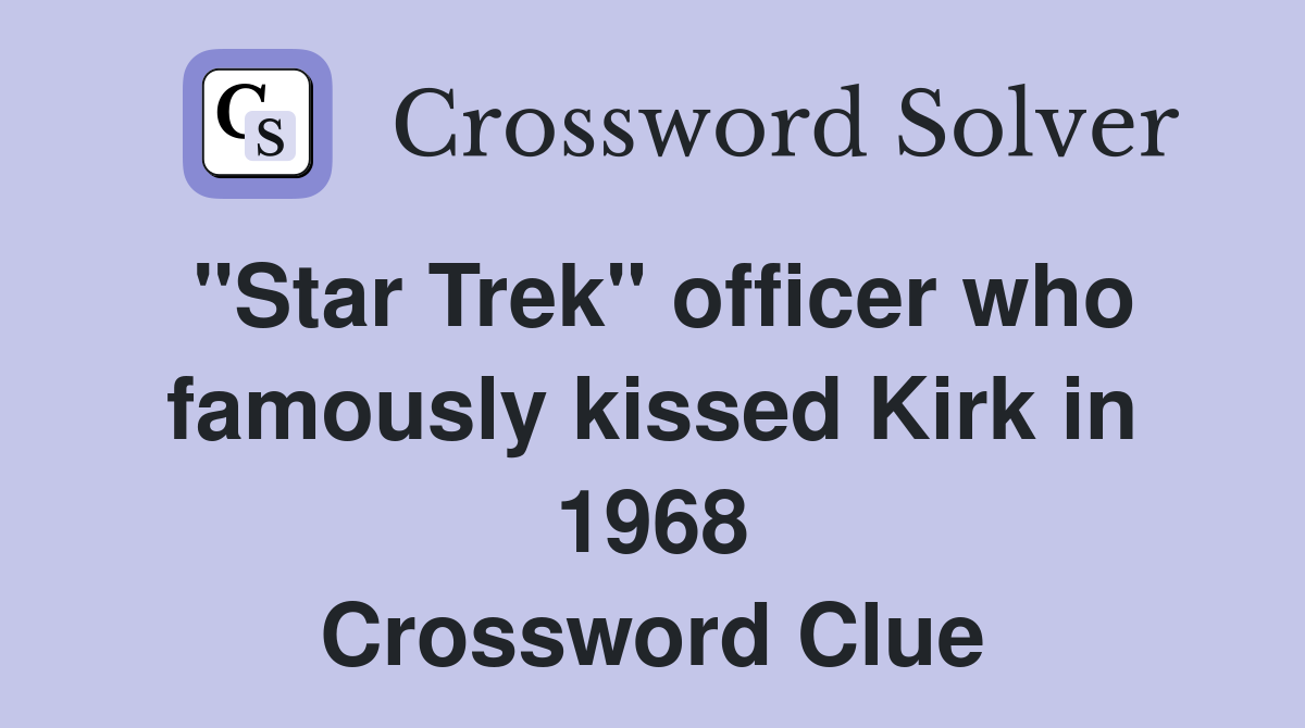 quot Star Trek quot officer who famously kissed Kirk in 1968 Crossword Clue