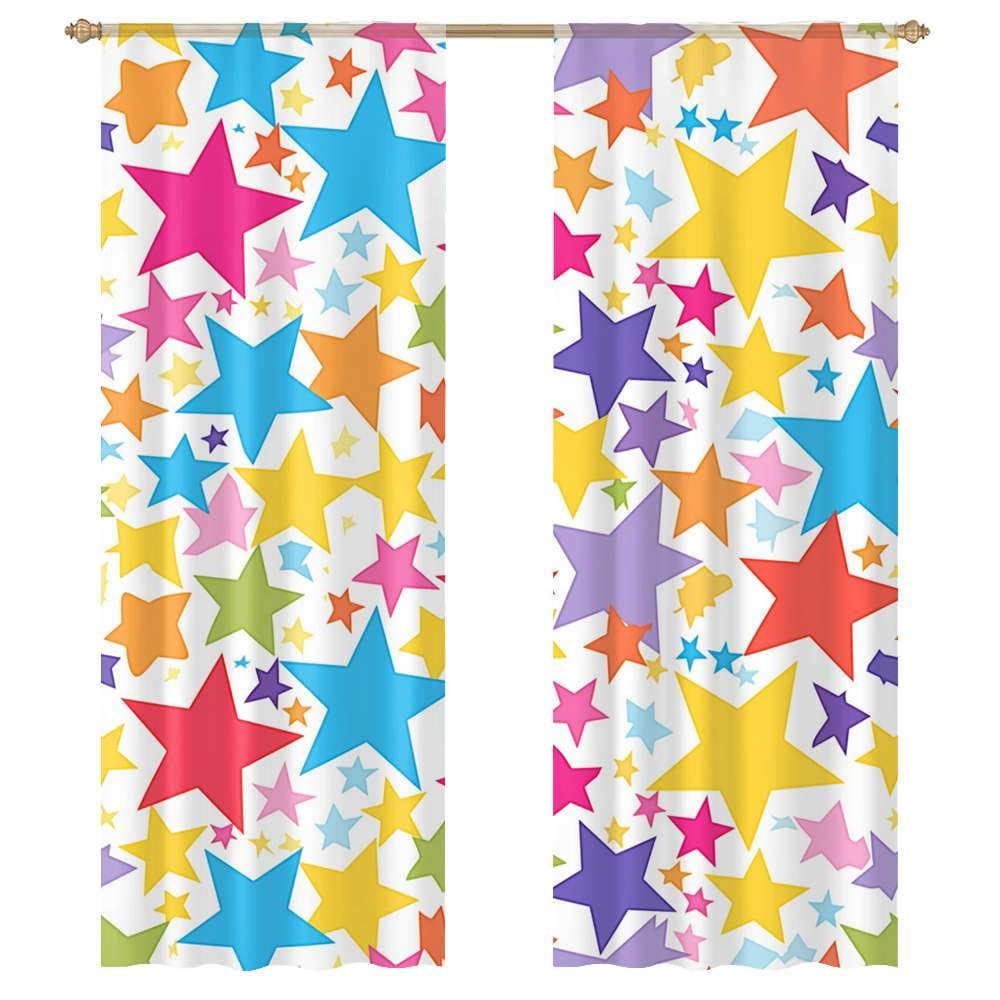 Colorful Star Sheer Window Curtains for Living Room Kitchen Bedroom