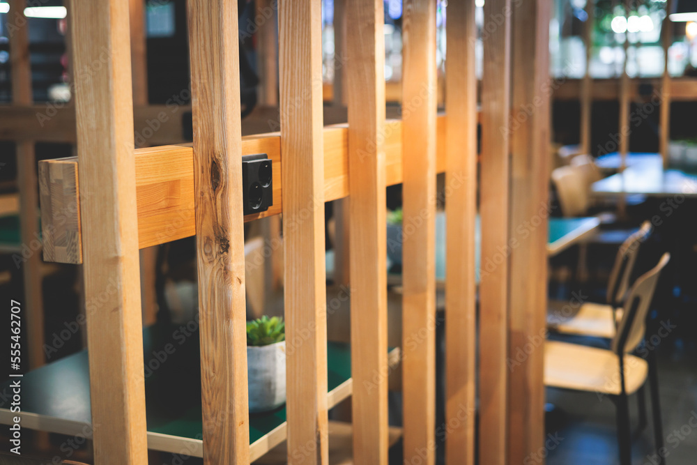 View of modern food court food hall interior in the big shopping mall