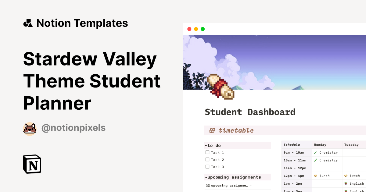Stardew Valley Theme Student Planner Template Notion Marketplace
