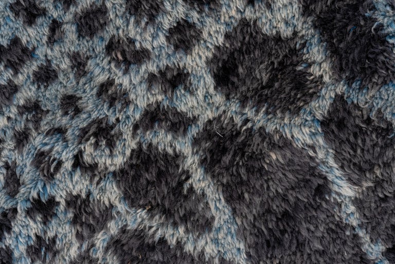 Abstract and Contemporary Dark Navy and Light Blue Moroccan Rug For