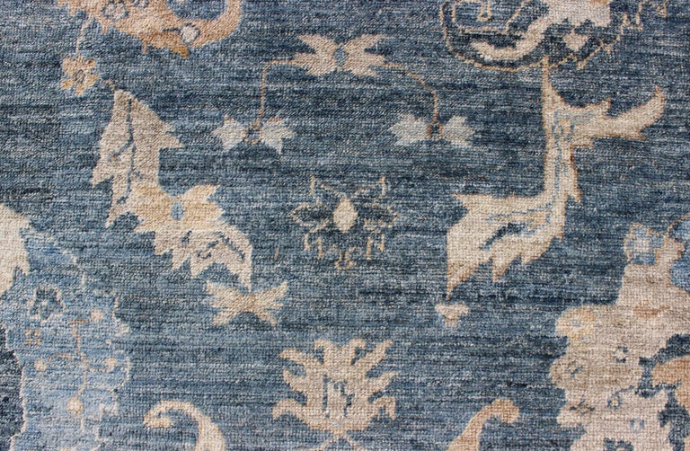 Angora Turkish Oushak Rug in Shades of Blue and Tan at 1stDibs