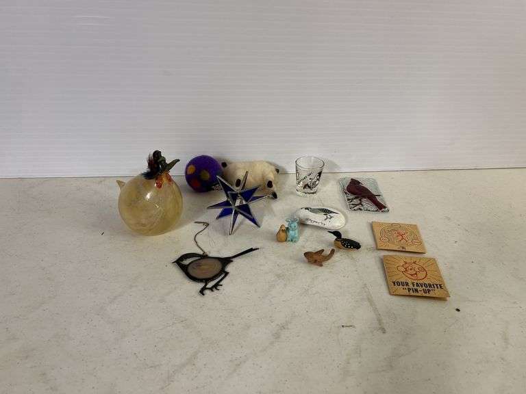 Burri blown art glass chicken pins mini wooden duck misc Kaufman