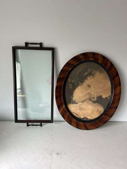 Vintage oval framed photo glass bottom tray Kaufman Realty Auctions