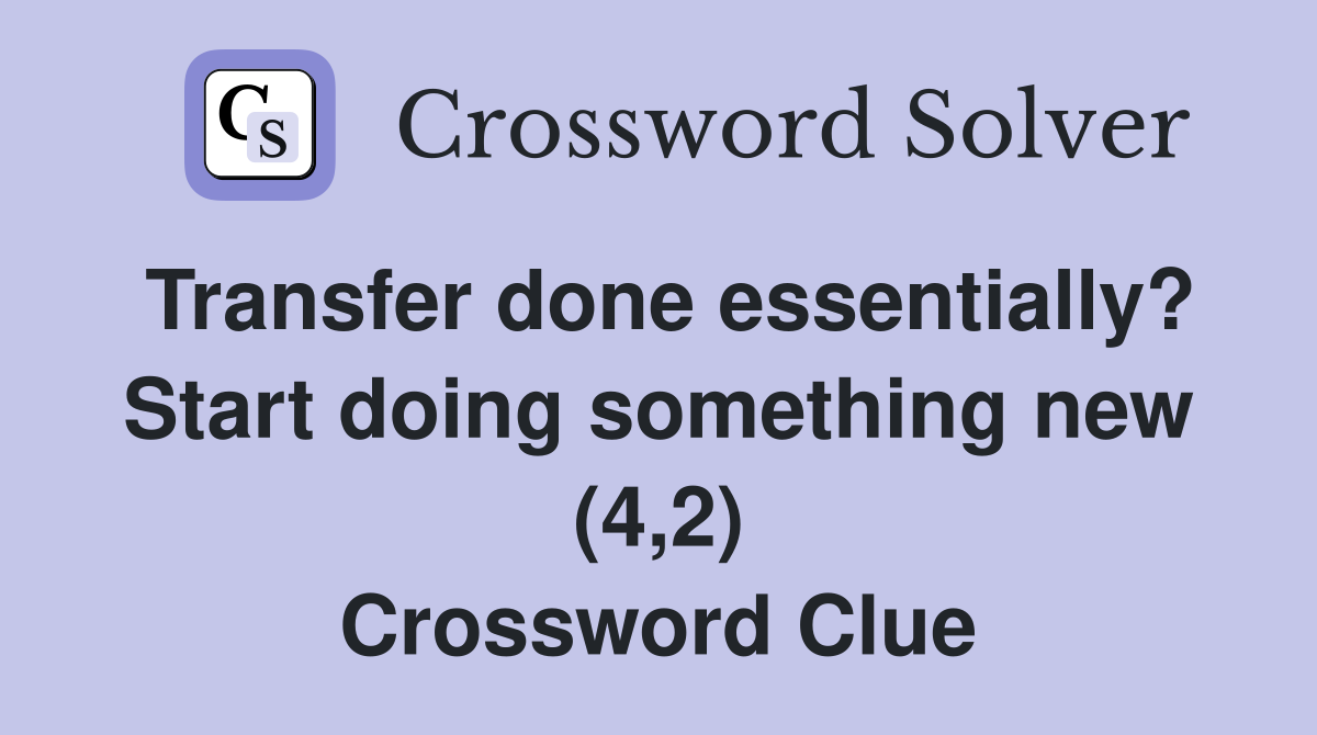 Transfer done essentially? Start doing something new (4 2) Crossword