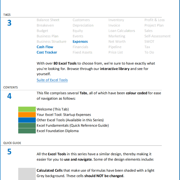 Start up Expenses Excel Worksheet Template Predesigned Formulas for