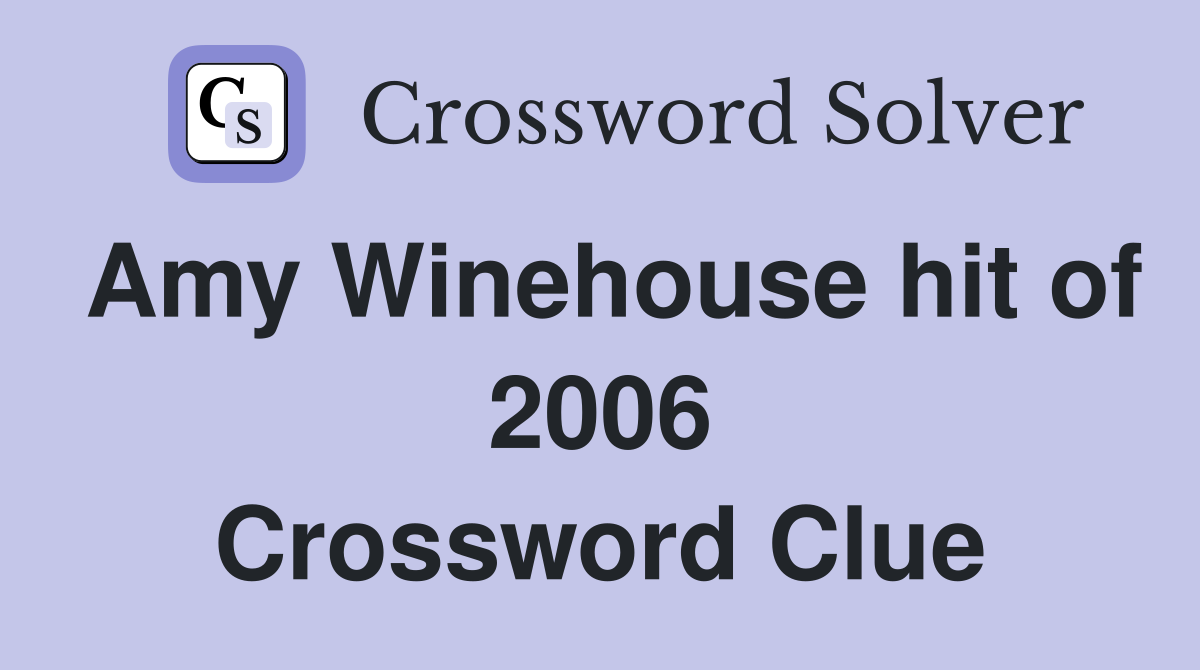 Amy Winehouse hit of 2006 Crossword Clue Answers Crossword Solver