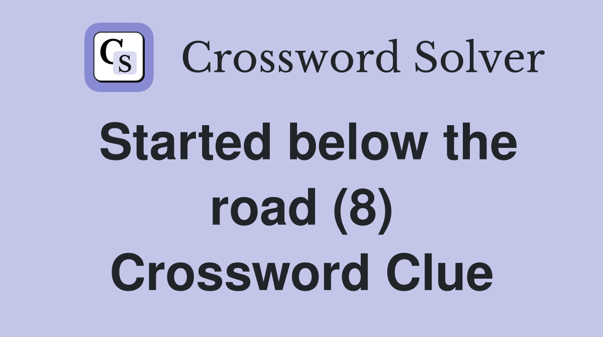Started below the road (8) Crossword Clue Answers Crossword Solver