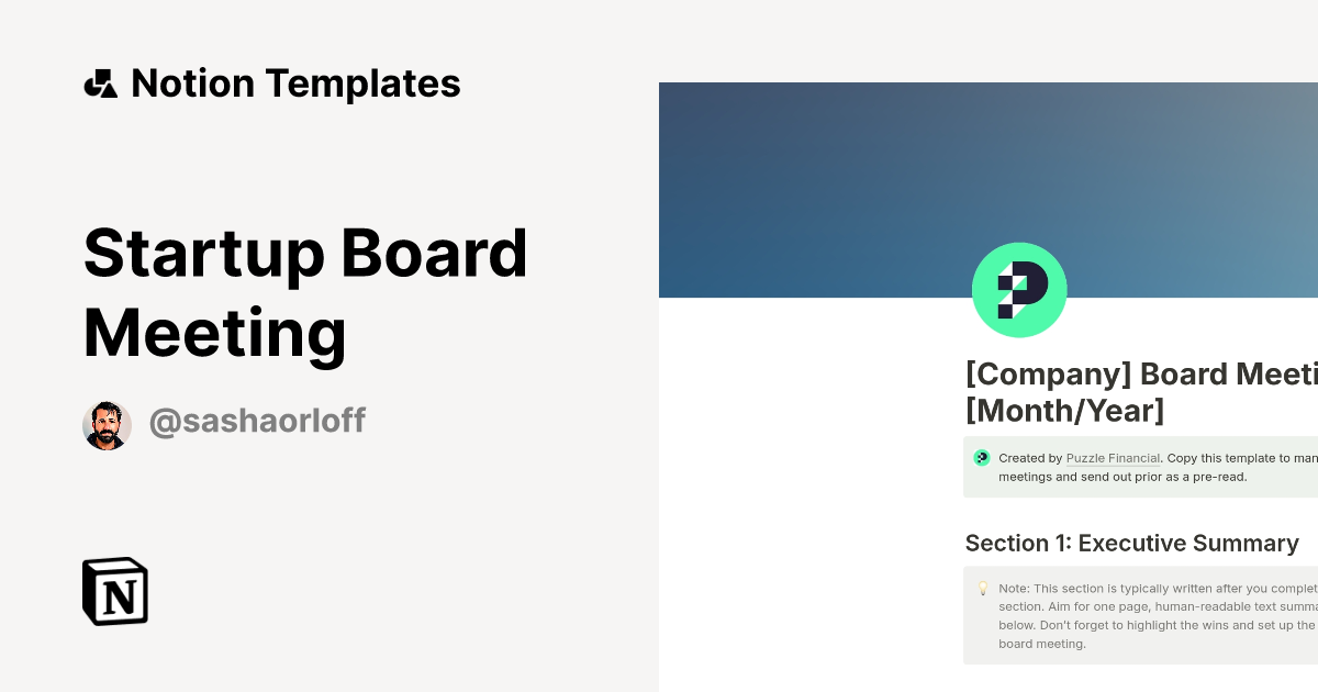 Startup Board Meeting Template by Sasha Orloff Notion Marketplace
