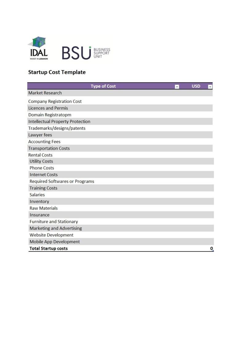 Startup Cost Template
