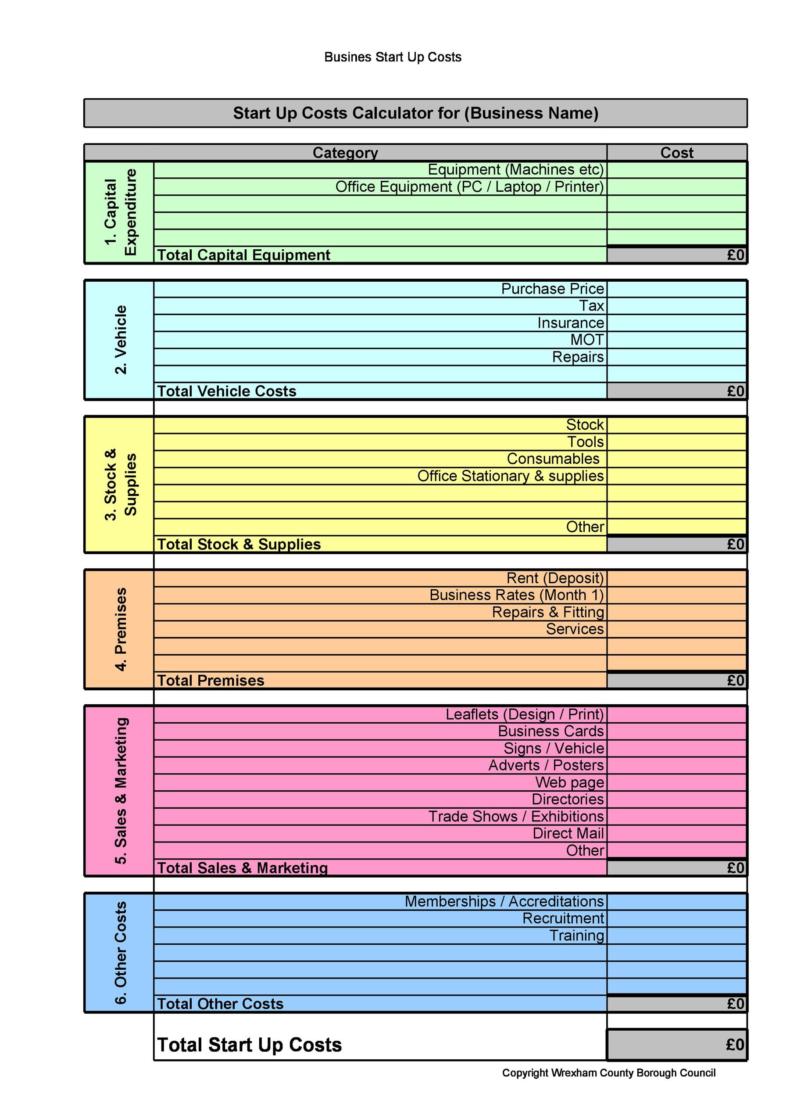 business start up cost template db excel com