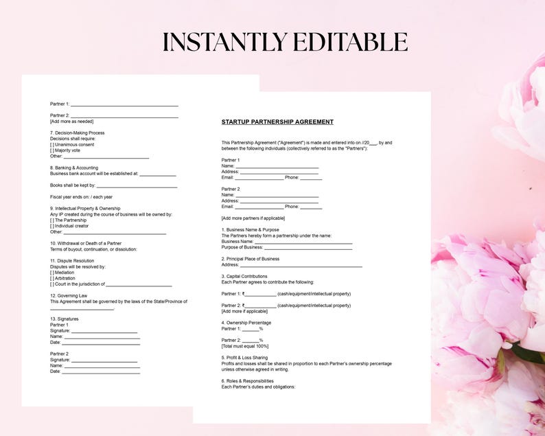 Startup Partnership Agreement Template Founders Agreement Editable DOC