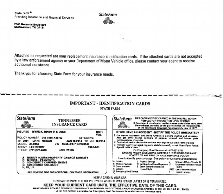 Vehicle Insurance Card Template State Farm Insurance Card Editable