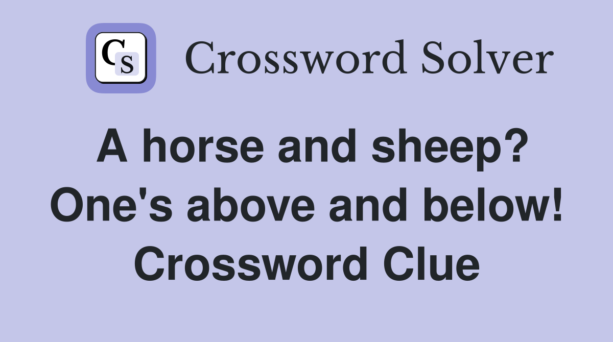 A horse and sheep? One #39 s above and below Crossword Clue Answers