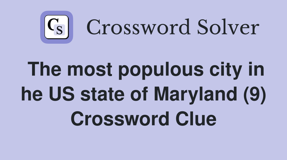The most populous city in he US state of Maryland (9) Crossword Clue
