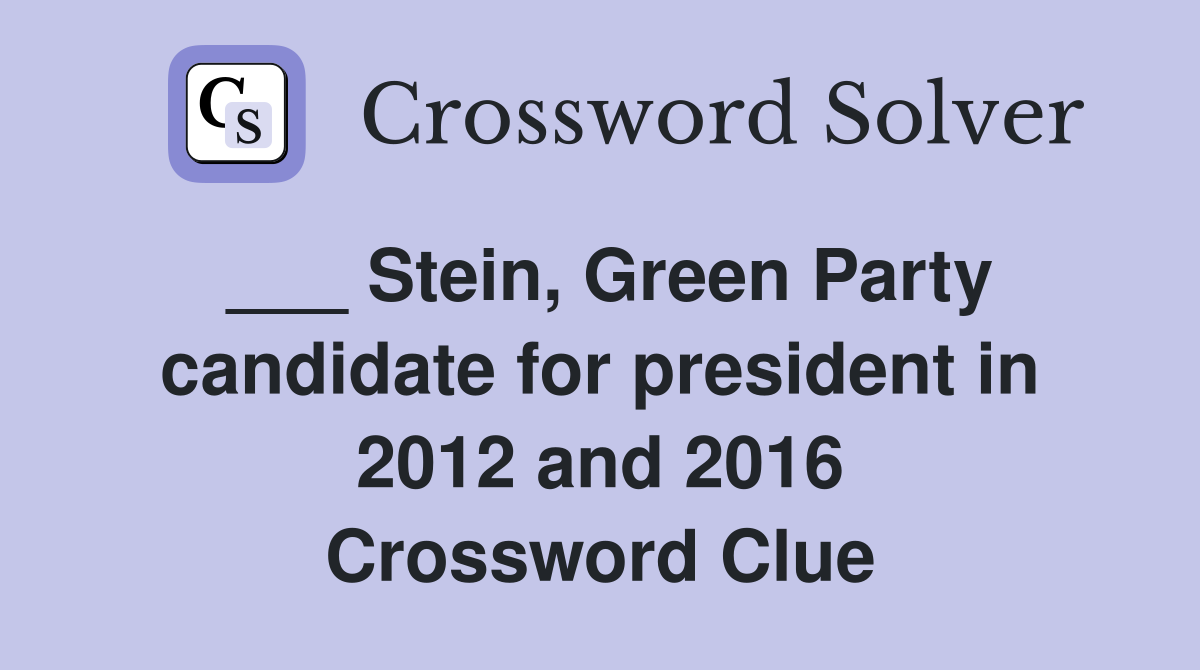 Stein Green Party candidate for president in 2012 and 2016 Crossword