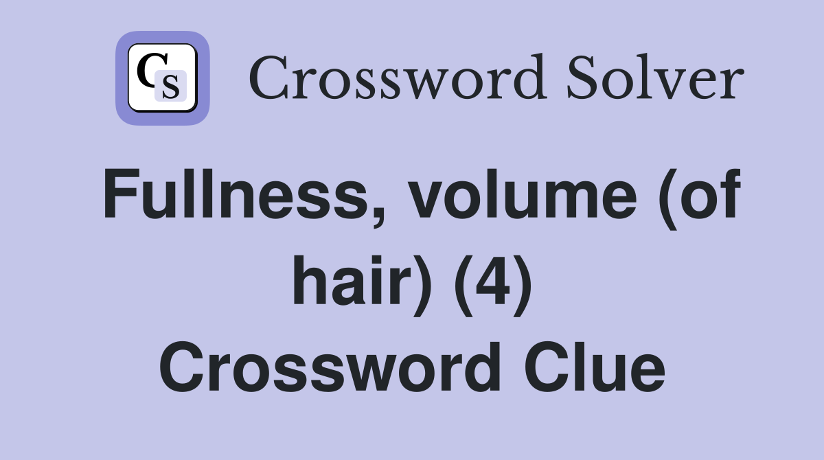 Fullness volume (of hair) (4) Crossword Clue Answers Crossword Solver