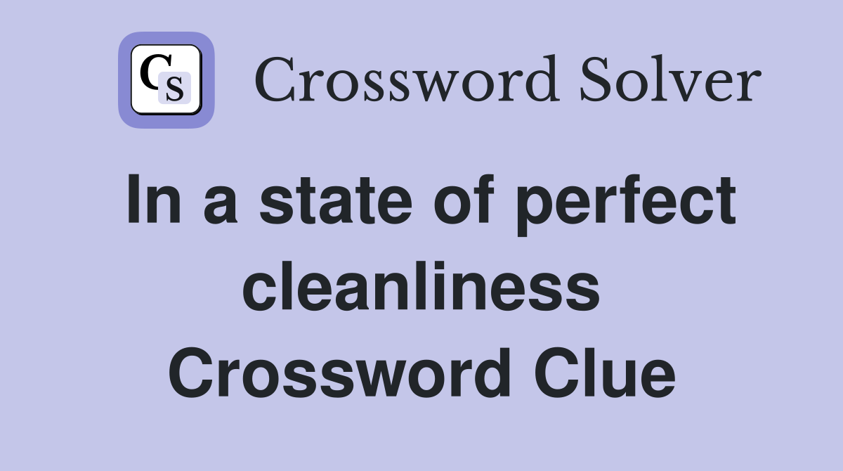 In a state of perfect cleanliness Crossword Clue Answers Crossword