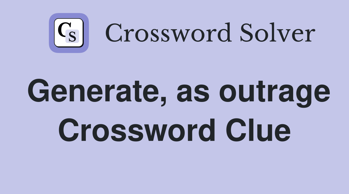 Generate as outrage Crossword Clue Answers Crossword Solver