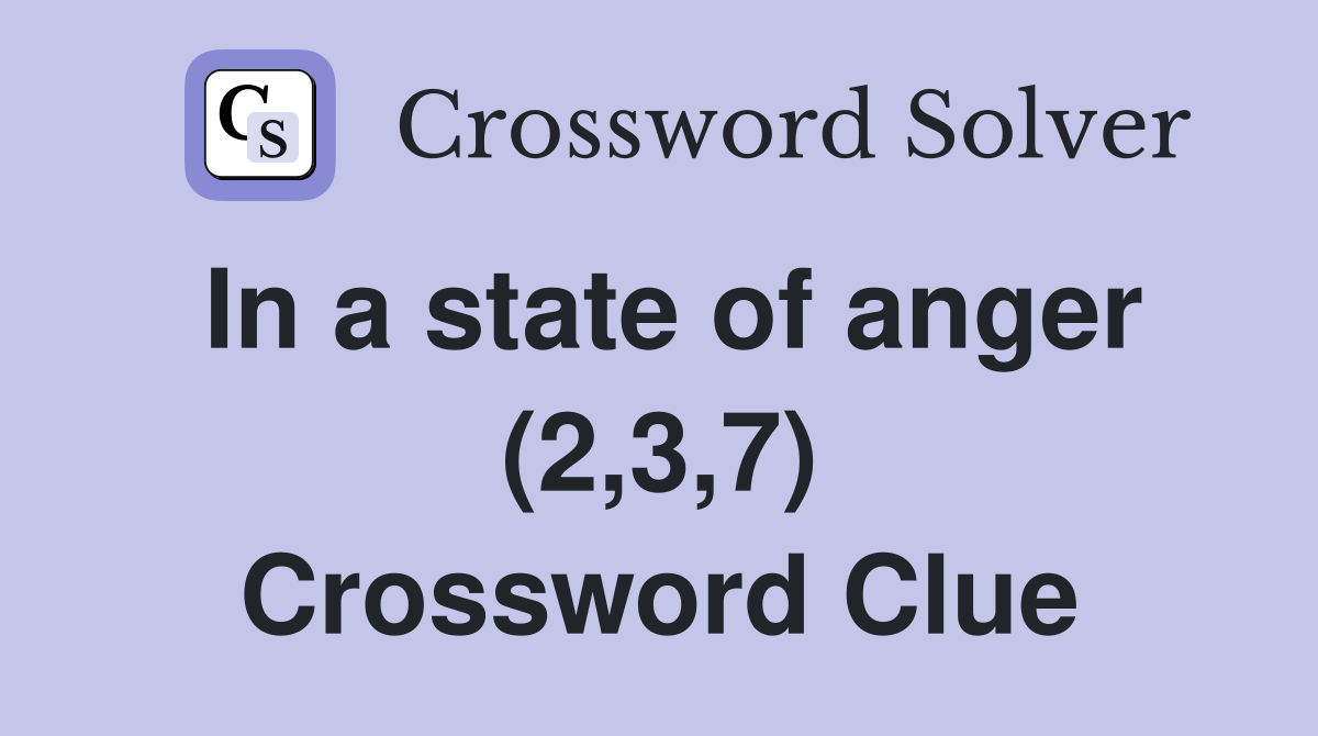 In a state of anger (2 3 7) Crossword Clue Answers Crossword Solver