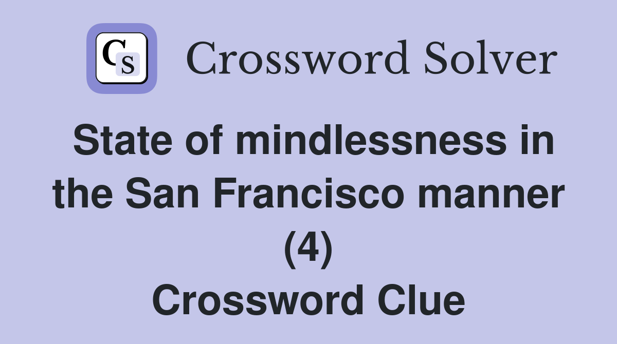 State of mindlessness in the San Francisco manner (4) Crossword Clue