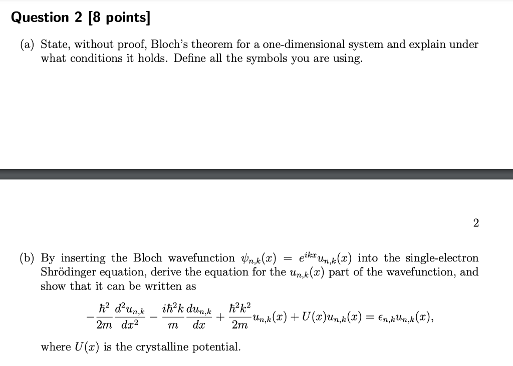 Solved (a) State without proof Bloch #39 s theorem for a Chegg com
