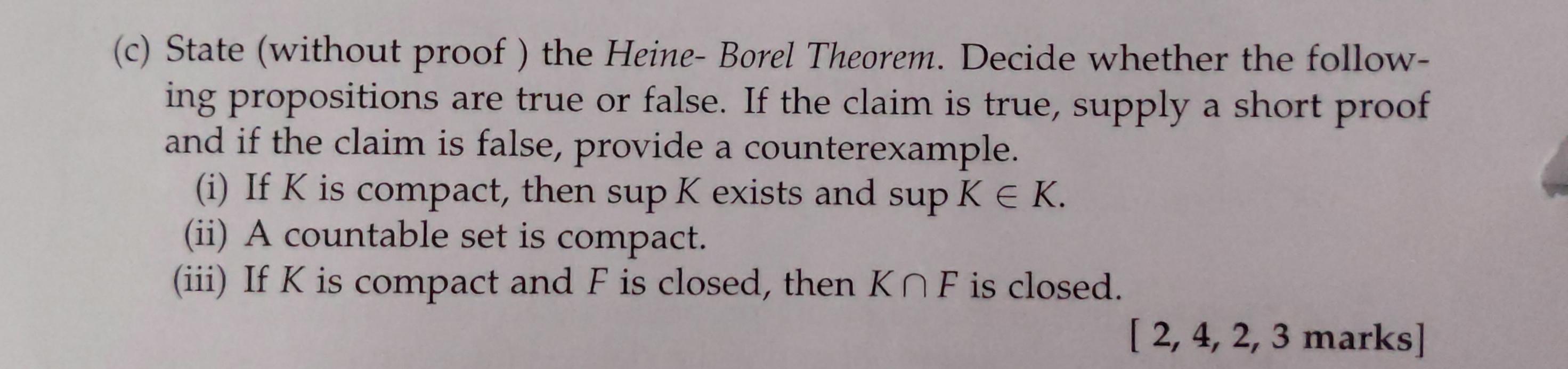Solved (c) State (without proof) the Heine Borel Theorem Chegg com