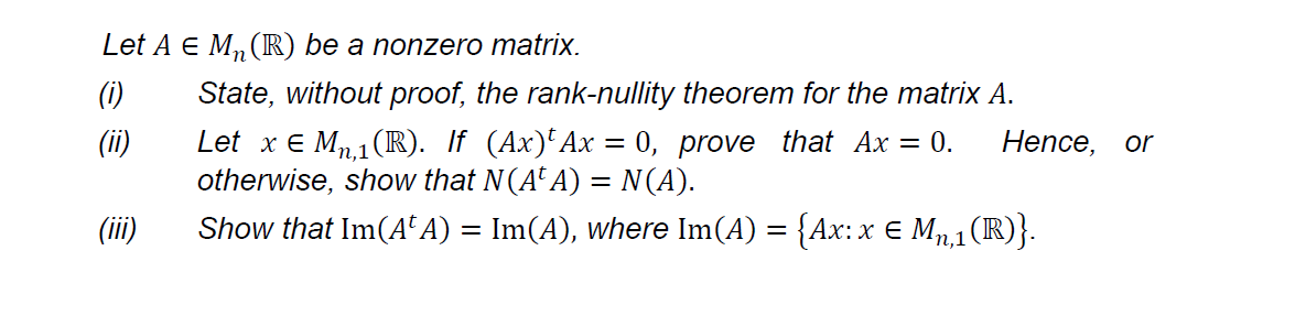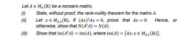Solved Let A∈Mn(R) be a nonzero matrix (i) State without Chegg com