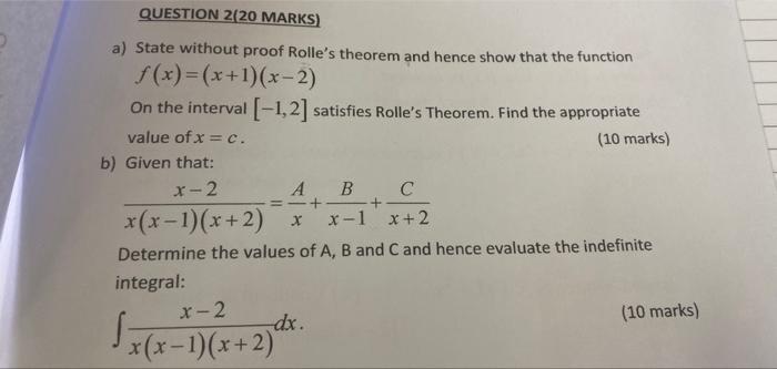 Solved a) State without proof Rolle #39 s theorem and hence show Chegg com