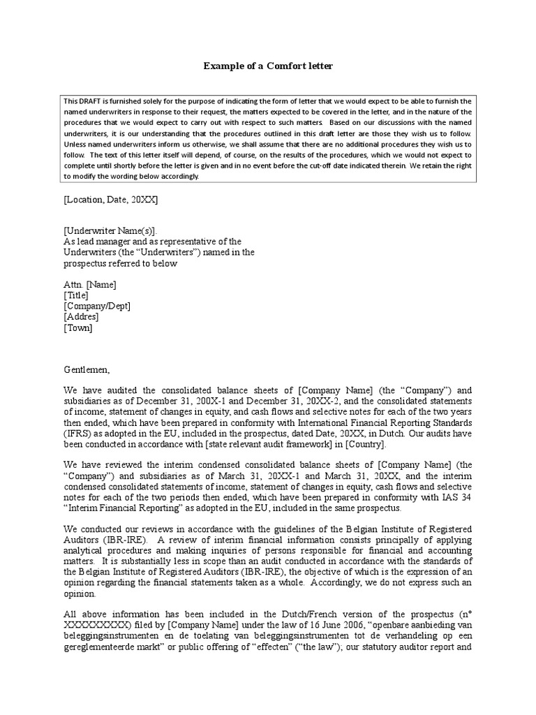Example of A Comfort Letter PDF Financial Statement Financial Audit