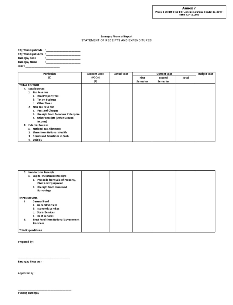 Barangay Financial Report: Statement of Receipts Expenditures (Annex