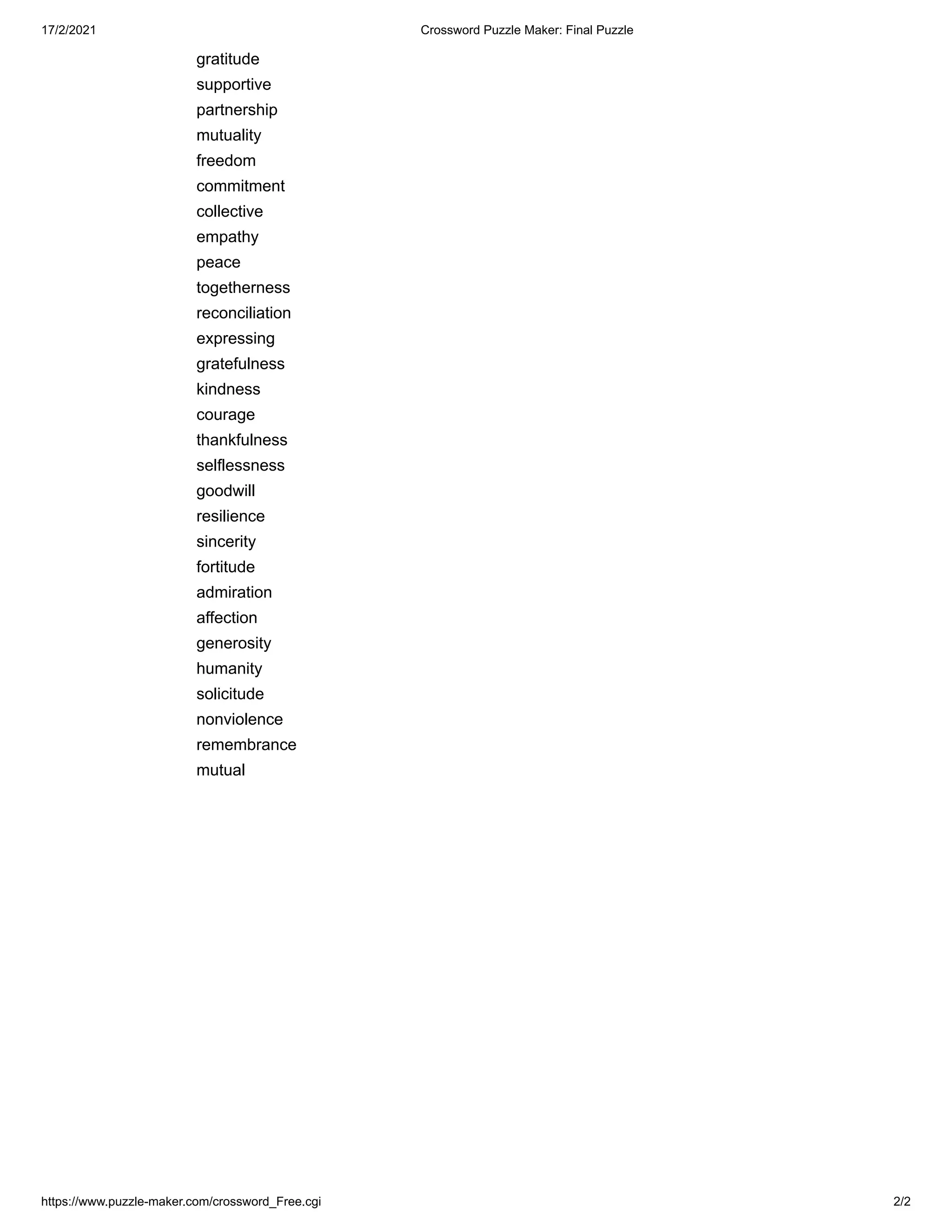TOGETHERNESS Crossword Clue 5 11 letters