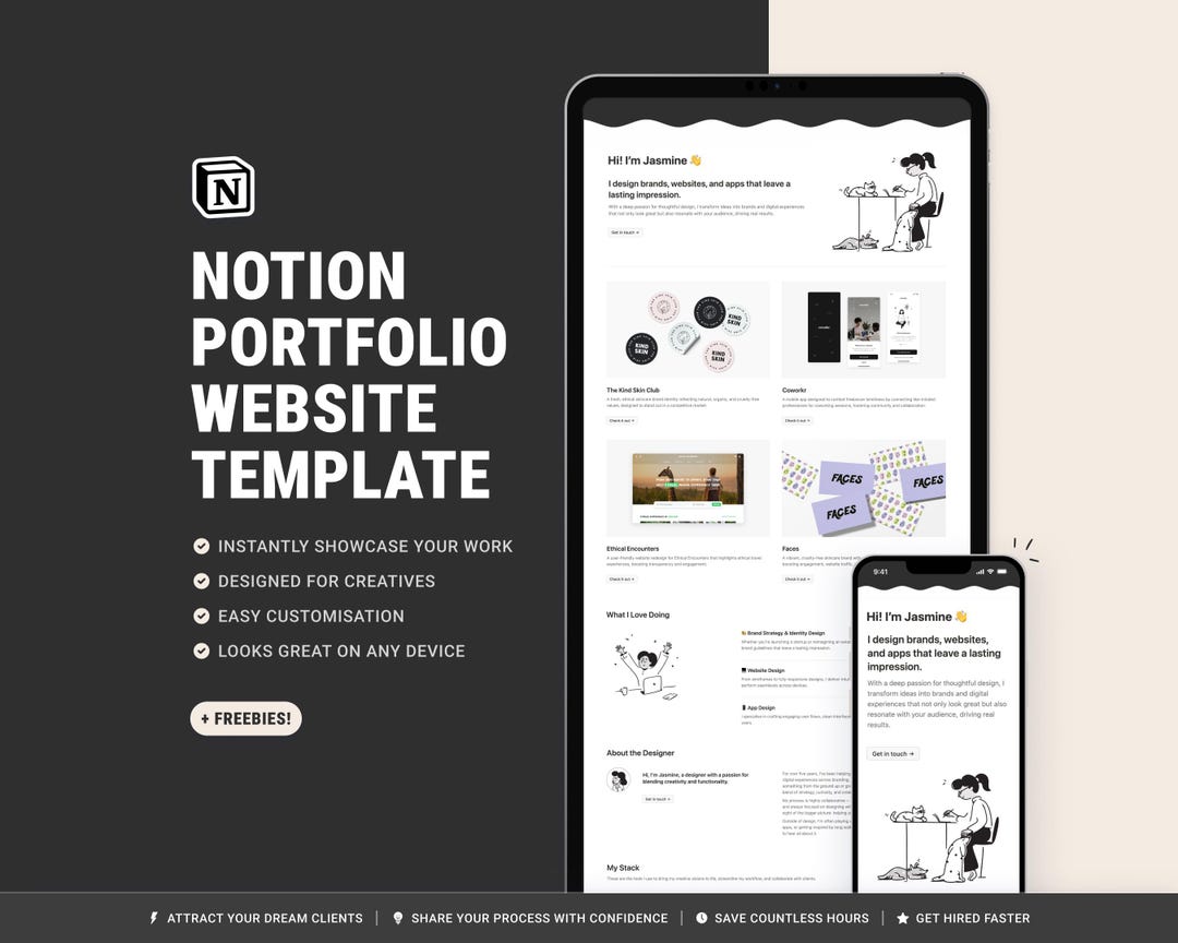 Notion Portfolio Website Template: Customizable Easy to Use (digital