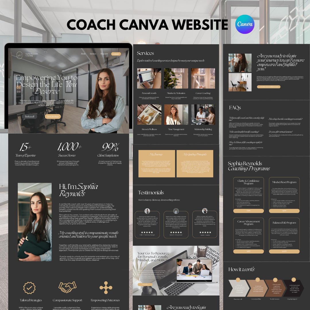 Canva Website Template Editable Gold Black Aesthetic Canva Website