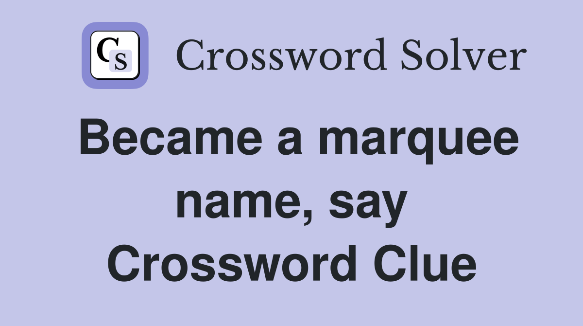 Became a marquee name say Crossword Clue Answers Crossword Solver