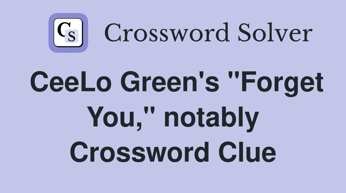 CeeLo Green #39 s quot Forget You quot notably Crossword Clue Answers