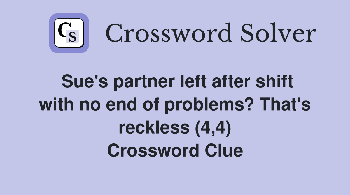 Sue #39 s partner left after shift with no end of problems? That #39 s reckless