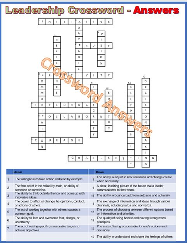 Leadership Skills Crossword Puzzle Digital and Print with Answers