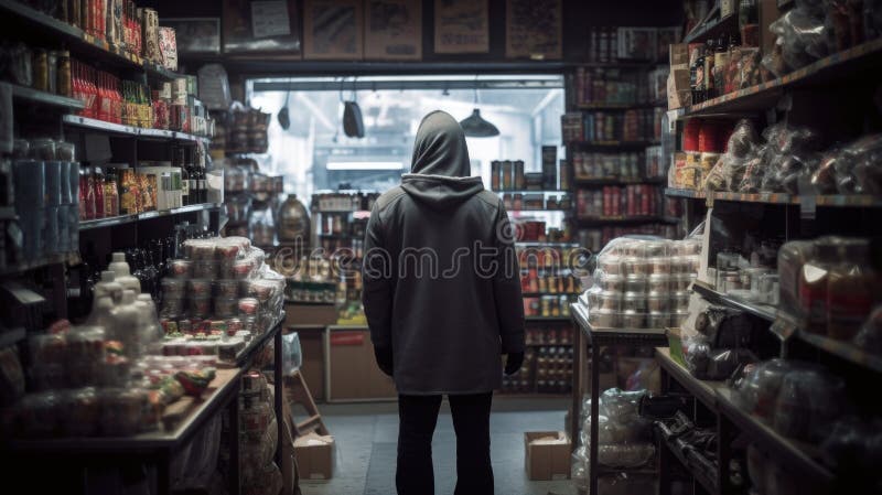 A Stealthy Thief Seen from Behind Navigates a Store Ready Stock