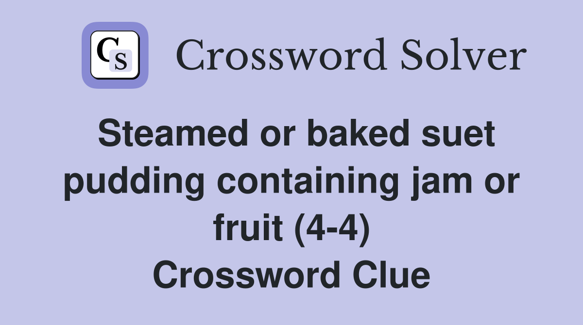 Steamed or baked suet pudding containing jam or fruit (4 4) Crossword