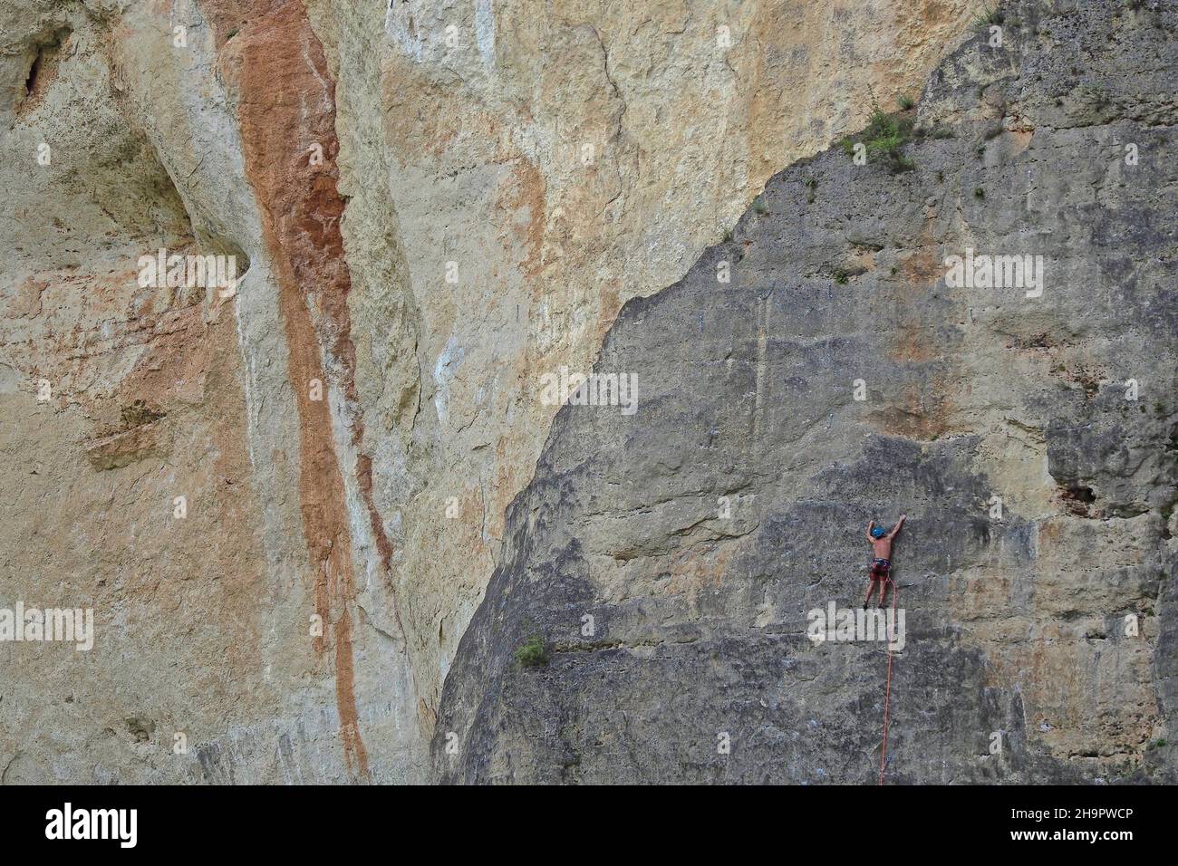 A rock climber ascends a steep rock face in Mexico stock photo