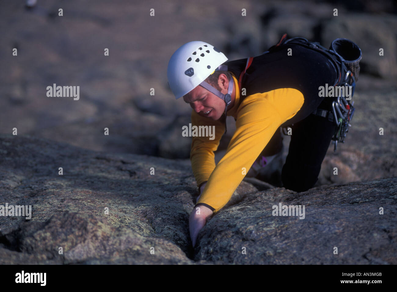 man climbs steep rock face Stock Photo Alamy